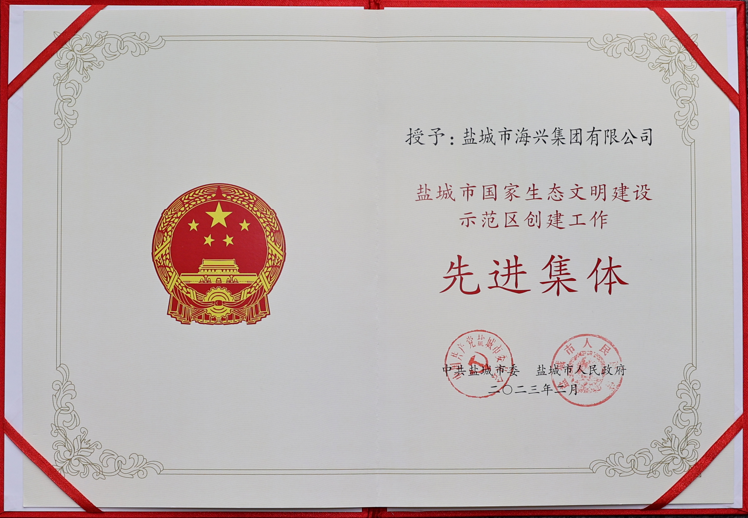 近日,市委、市政府表彰了一批鹽城市國家生態(tài)文明建設(shè)示范區(qū)創(chuàng)建工作先進(jìn)集體和先進(jìn)個人。其中,海興集團(tuán)榮獲“鹽城市國家生態(tài)文明建設(shè)示范區(qū)創(chuàng)建工作先進(jìn)集體”榮譽(yù)稱號。2023-04-04